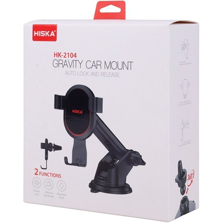 پایه نگهدارنده هیسکا HK-2104 هولدری زیبا با بدنه ای بسیار محکم و مقاوم است. بدنه ی این هولدر از پلاستیک ABS با کیفیت ساخته شده است.این پایه دارای دو بازویی است که گوشی موبایل را نگه میدارد.هنگام قراردادن گوشی روی پایه این بازوها به خوبی فیکس شده و کاملا ایمن گوشی را نگه میدارد. در قسمت پایین آن نیزبخش سومی وجود دارد که به ثبات بیشتر گوشی روی هولدر کمک می کند.پایه تلسکوپی از مهمترین قسمتهای این هولدر است که با باز و بسته شدن آن میتوانید ارتفاع هولدر را تنظیم نمایید. همچنین این هولدر قابلیت جداشدن از بدنه خود و اتصال به دریچه کولر خودرو شما دارد که شما را از هر نظر بی نیاز می کند.